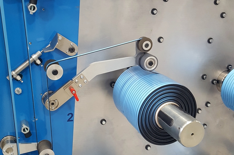 Bobinage du produit fingerlift après fente et retrait de la partie fingerlift. Tous les rouleaux traités pour l'exécution de l'adhésif ouvert de fingerlift. Bobines robustes pour un fonctionnement à haute capacité dans l'industrie automobile.