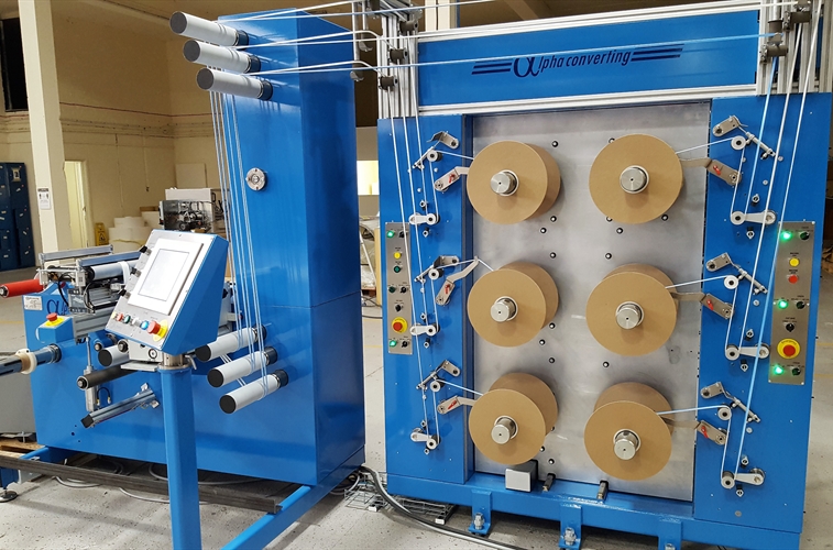 Les bobines à fente d'Alpha convertissent efficacement les mini rouleaux géants de film et de bandes en bobines ou bobines enroulées de niveau avec un mécanisme de déplacement précis contrôlé par ordinateur et un contrôle de tension sensible.