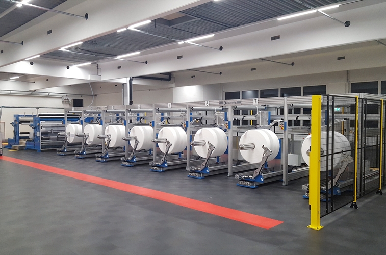 Les rouleaux de crêpes peuvent être produits sur une rebobineuse à refendeuse telle qu'une découpeuse ALPHALAB TWIN ou sur une découpeuse à un seul couteau.