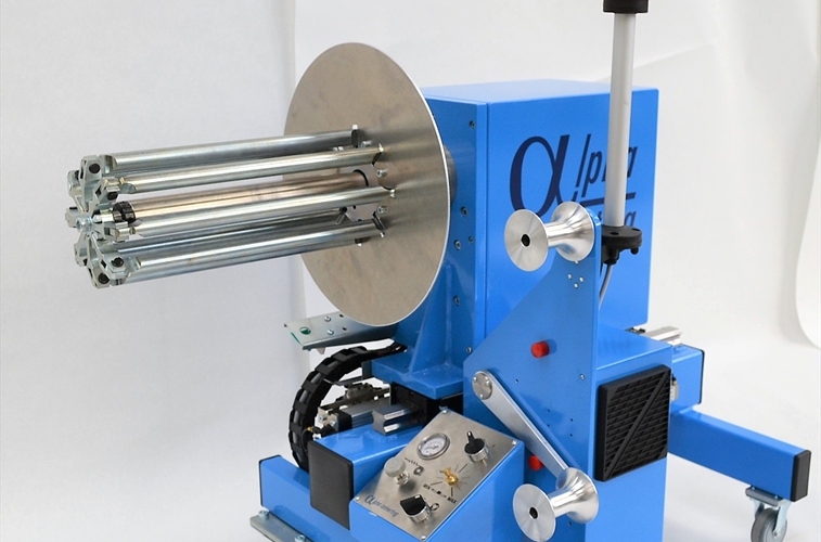 Alternativamente, cuando el espacio es escaso, el motor de la bobinadora puede funcionar bajo control de par directo. Los rollos de tamaño completo pueden descargarse rápidamente y reiniciarse la bobinadora. Las bobinadoras ALPHATRIM están equipadas con un sistema de inflado de aire remoto en ejes de bobinado para núcleos de papel o un mecanismo de liberación rápida en ejes sin núcleo.