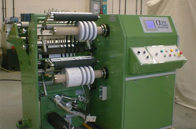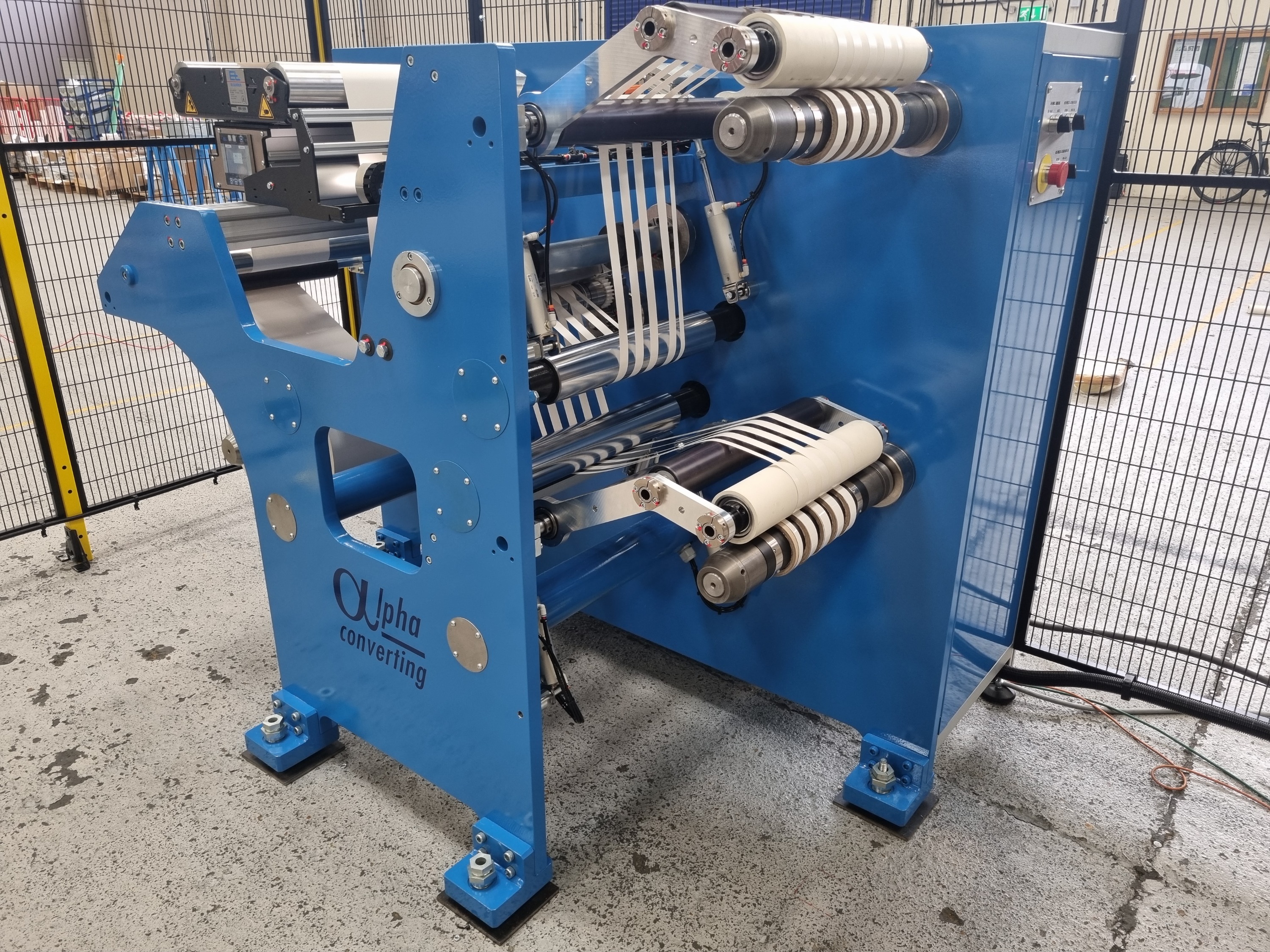 La rebobinadora cortadora ALPHALAB es una rebobinadora central robusta con ejes de bobinado en voladizo adecuados para el corte y rebobinado de ancho estrecho.