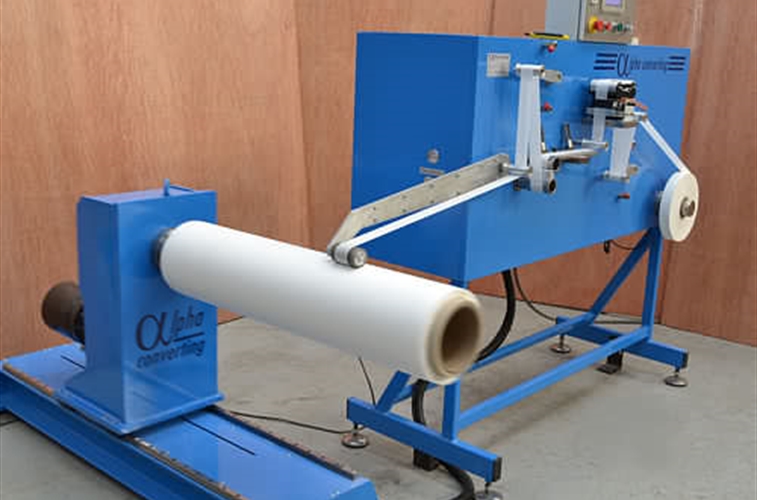 Les rouleaux de crêpes peuvent être produits sur une rebobineuse à refendeuse telle qu'une découpeuse ALPHALAB TWIN ou sur une découpeuse à un seul couteau.