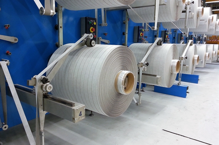 Bobinage du produit fingerlift après fente et retrait de la partie fingerlift. Tous les rouleaux traités pour l'exécution de l'adhésif ouvert de fingerlift. Bobines robustes pour un fonctionnement à haute capacité dans l'industrie automobile.