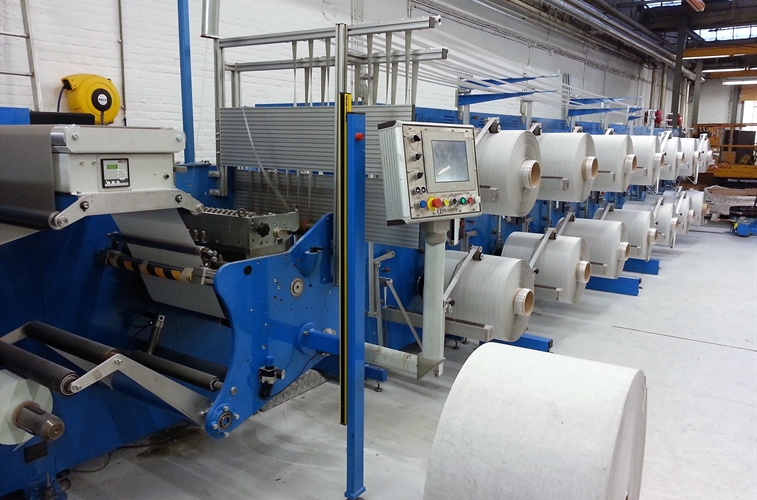 Les rouleaux de crêpes peuvent être produits sur une rebobineuse à refendeuse telle qu'une découpeuse ALPHALAB TWIN ou sur une découpeuse à un seul couteau.